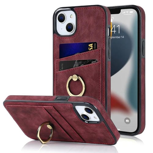 Funda de Teléfono iPhone 13 Mini Cuero Parche Vintage Soporte para Anillo (Rojo)