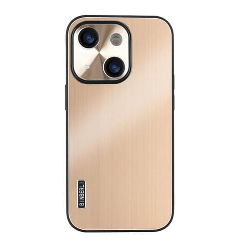 Caja de Teléfono Híbrida para iPhone 13 PC a Prueba de Golpes Cepillada Aleación de Aluminio (Dorado)