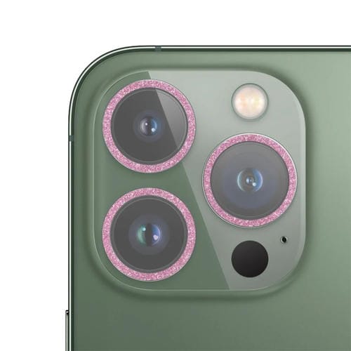 Película de Lente de Cámara de Vidrio Templado para iPhone 13 Pro 13 Pro Max Glitter Ring (Rosa)