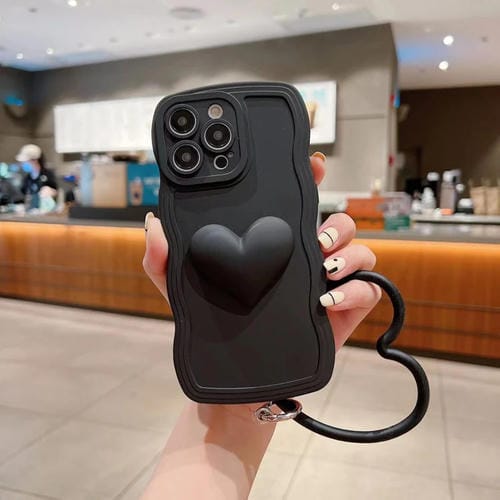 Funda de Silicona para iPhone 13 Pro 3D Heart Skin-Feel con Muñequera (Negro)