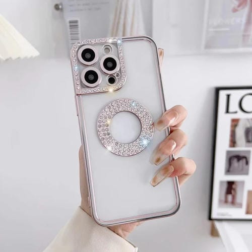 Caja de teléfono para iPhone 13 Pro con diamantes electrochapados (Oro Rosa)