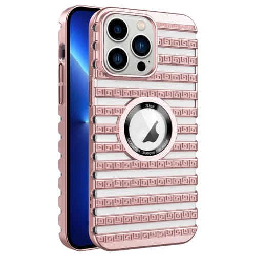 For iPhone 13 Pro Electroplated Hollow Phone Case with Cooling Ladder(Pink)