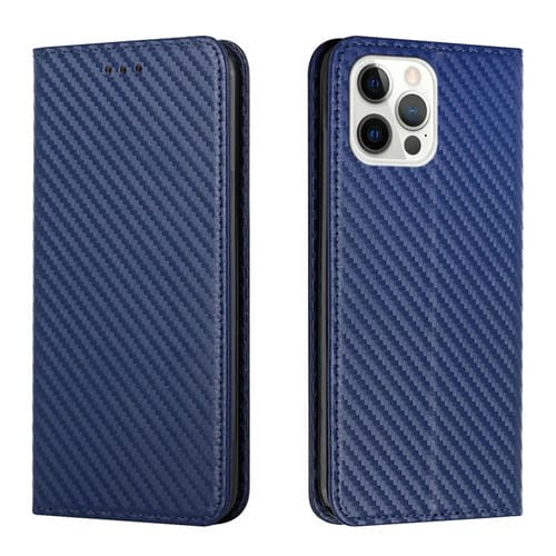 Funda para iPhone 13 Pro Carbon Fiber Texture Flip Holder de Cuero (Azul)