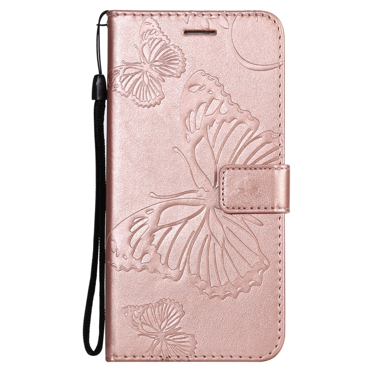 Estuche de Cuero para iPhone 13 Pro con Tapa Horizontal Patrón Mariposa 3D Soporte Ranura Tarjeta Billetera Cordón (Oro Rosa)