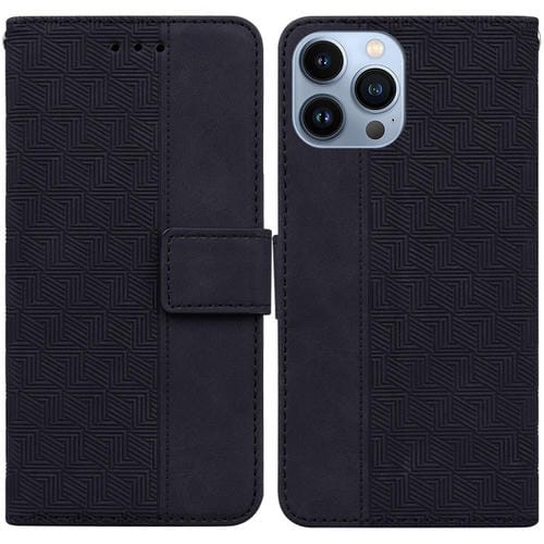 Estuche de teléfono iPhone 13 Pro Cuero con Relieve Geométrico (Negro)