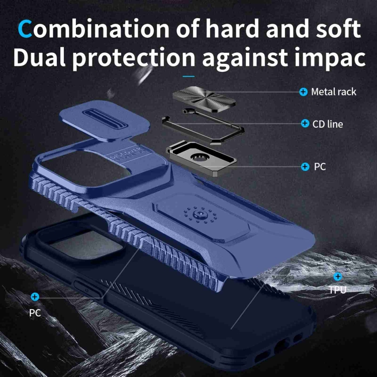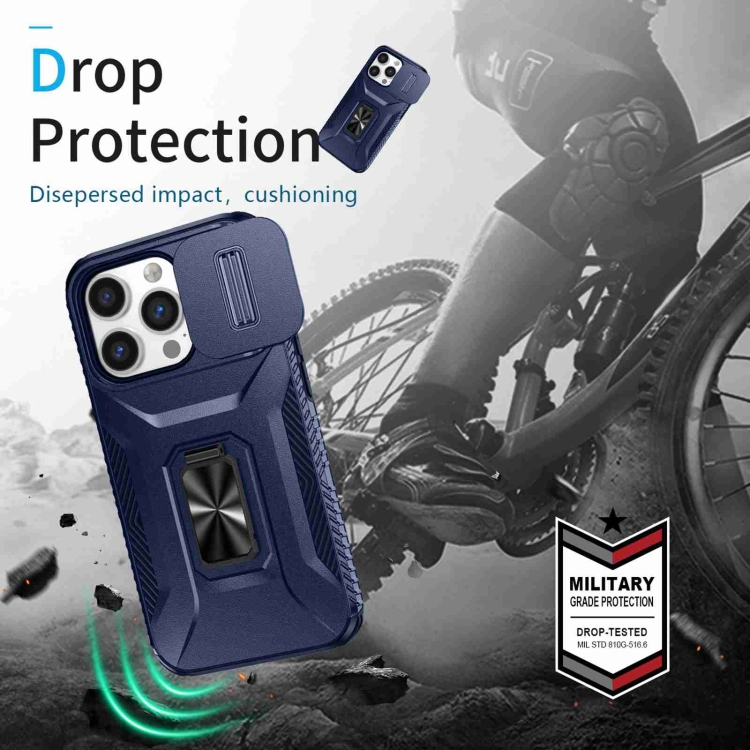 Estuche para Teléfono iPhone 13 Pro con Soporte Deslizante para Levas (Azul)