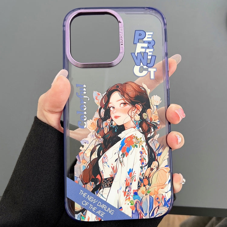 For iPhone 13 Pro Case Colorful Cartoon Engraved Phone Case (Fashion Girl)