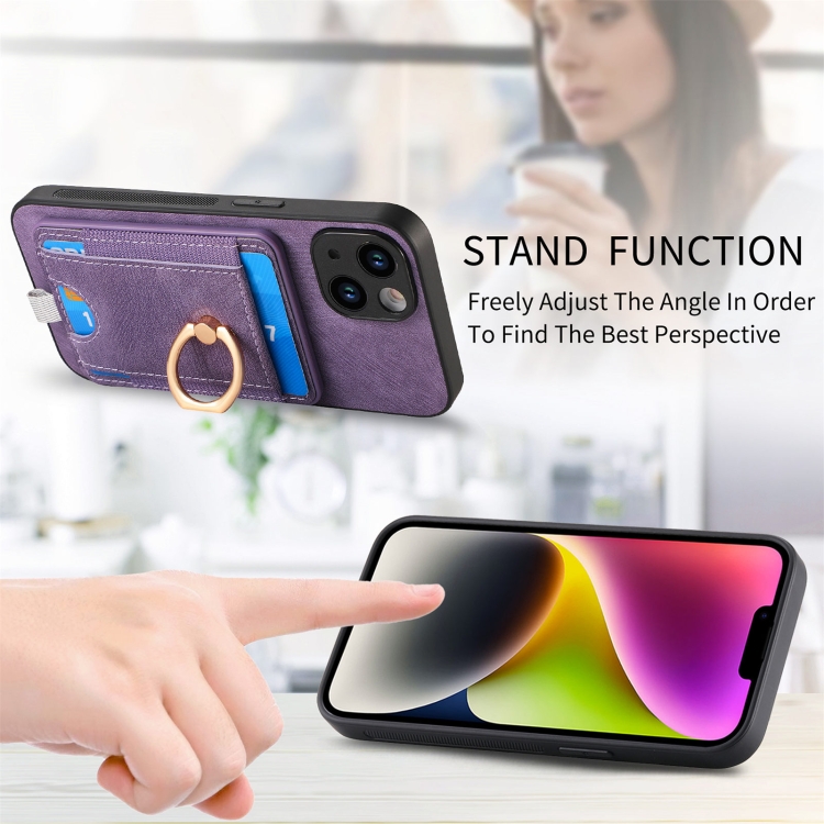 Funda para Teléfono iPhone 13 Pro Cuero con Bolsa para Tarjeta Magnética Divisible Retro (Púrpura)