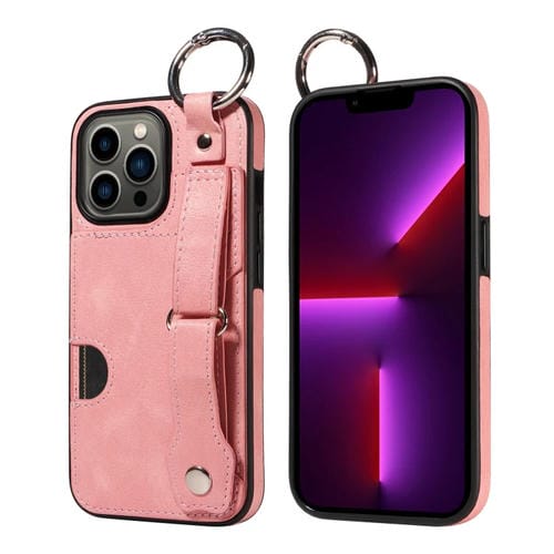 Funda para Teléfono iPhone 13 Pro con Anillo y Ranura para Tarjeta Textura de Pantorrilla (Rosa)