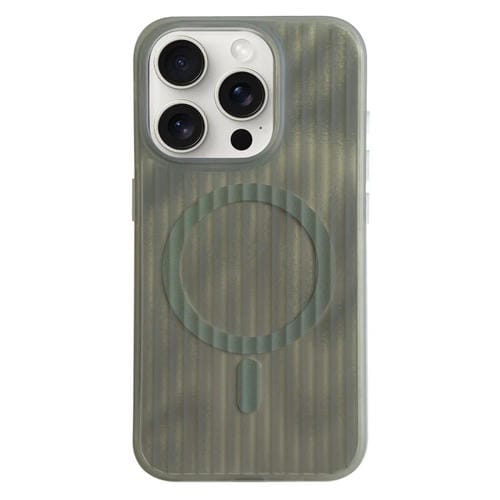 Funda para Teléfono iPhone 13 Pro Magsafe Magnética Sensación de Piel a Rayas (Verde)