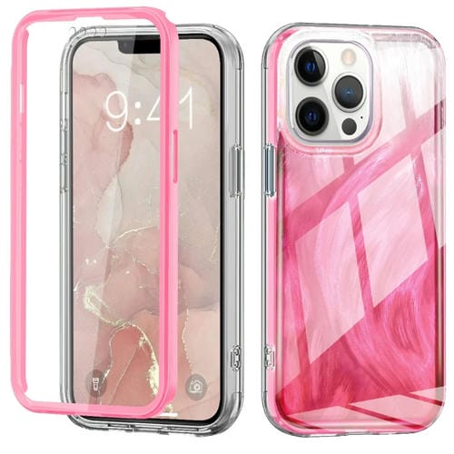 Funda para iPhone 13 Pro Max 2 en 1 Imd Gradient Feather PC + TPU (Rojo Rosa)