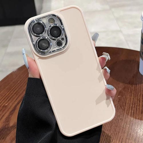 Caja de Teléfono para iPhone 13 Pro Max con Marco de Lente Galvanizada y Película de Lente (Rosa Claro)