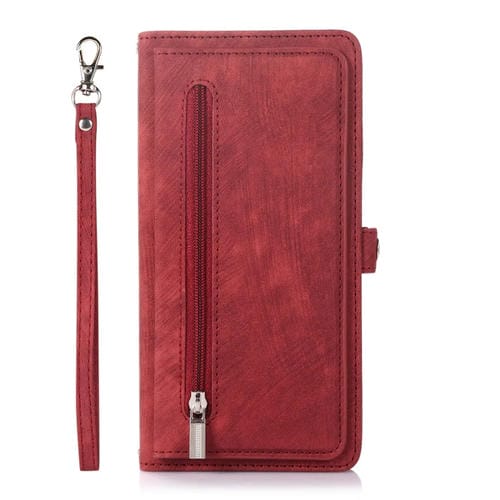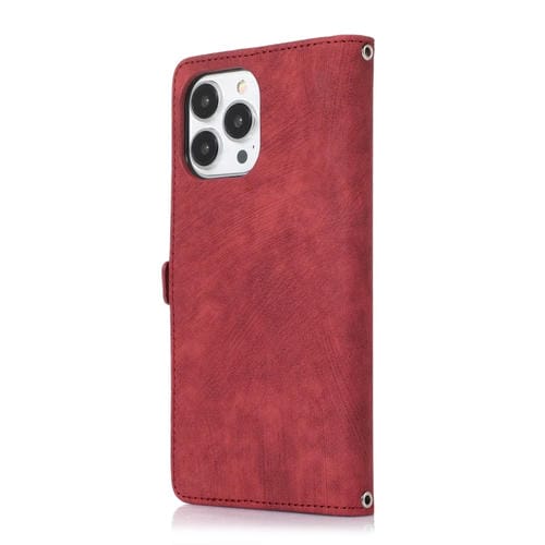 Funda para iPhone 13 Pro Max Monedero Cuero con Cremallera Ranura para Tarjeta Hebilla (Rojo)