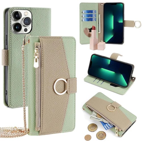 Funda de Cuero Crossbody para iPhone 13 Pro Max Litchi Texture (Verde)