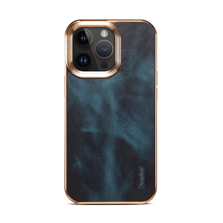 Funda para iPhone 13 Pro Max Denior Oil Wax Cowhide Plating Protección (Azul)