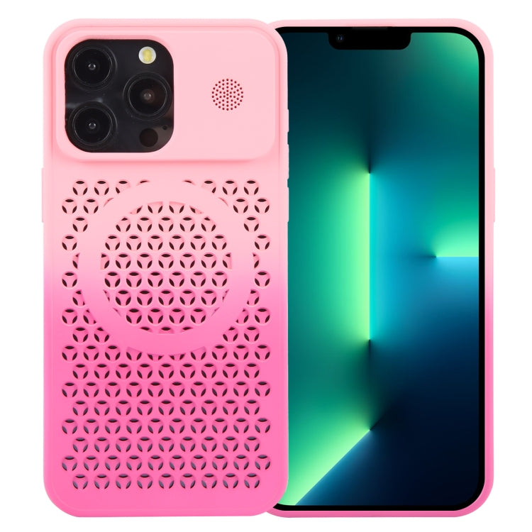 Estuche Magnético para Teléfono iPhone 13 Pro Max con Aromaterapia y Enfriamiento de Panal (Rosa + Rojo Rosa)