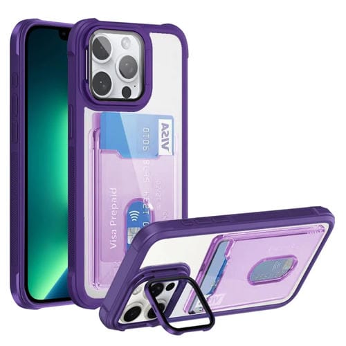 Estuche para Teléfono iPhone 13 Pro Max TPU Híbrido Acrílico con Soporte para Tarjeta (Púrpura)