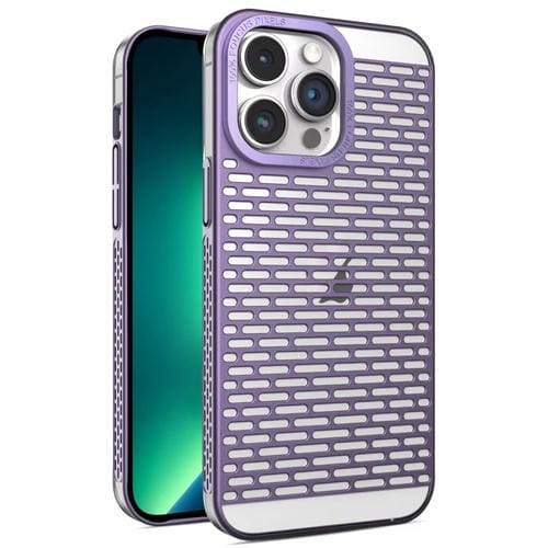Funda para Teléfono iPhone 13 Pro Max PC Galvanizada Mate Hueca Disipación de Calor (Púrpura)