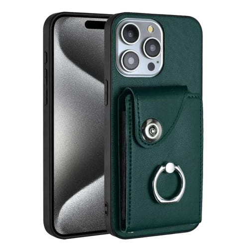 Funda para teléfono iPhone 13 Pro Max con soporte para anillo y bolsa para tarjeta de órgano (Verde)