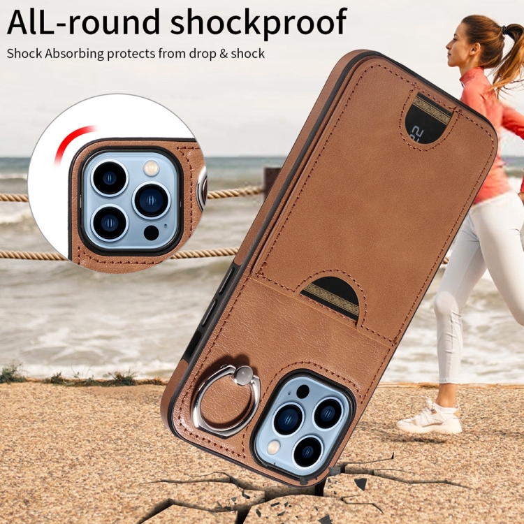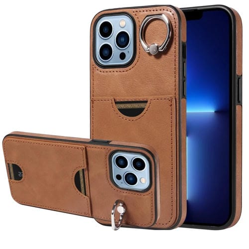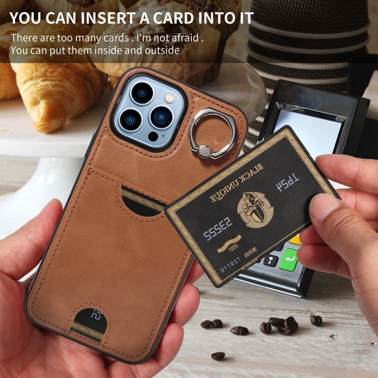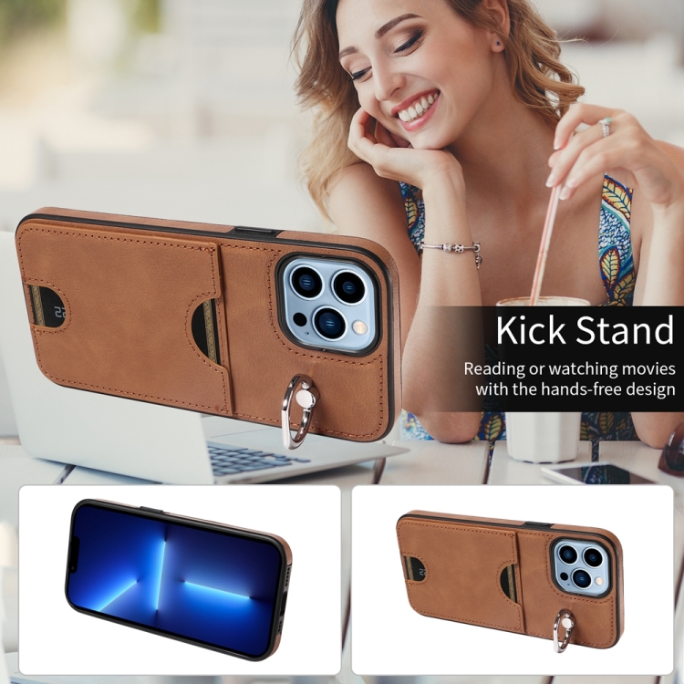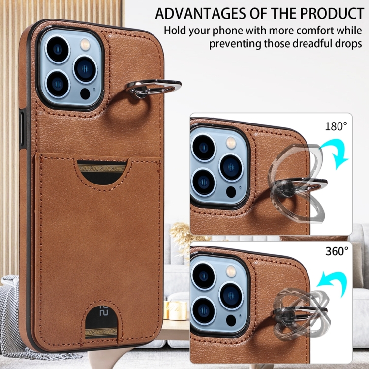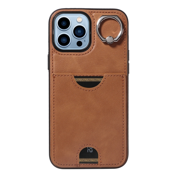 Funda para teléfono iPhone 13 Pro Max con soporte para anillo y ranura para tarjeta (Marrón)