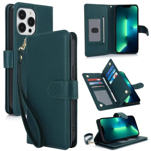 Funda para Teléfono iPhone 13 Pro Max Cuero Rfid con Billetera MultiTarjeta (Verde)