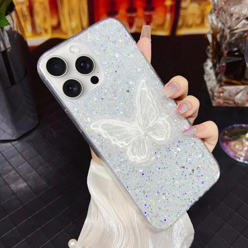 For iPhone 13 Pro Max Starry Sequins Embroidery Butterfly Epoxy TPU Phone Case(Silver)