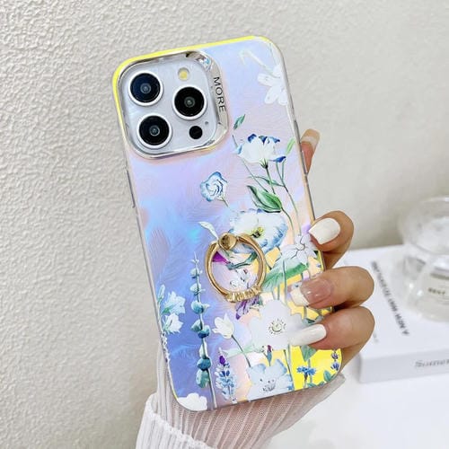 Funda de Teléfono TPU Apple iPhone 13 Pro Max Galvanoplastia Láser Anillo de Flor (Azul)