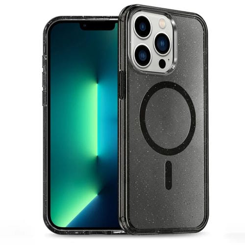 Funda de teléfono iPhone 13 Pro Max Glitter Powder TPU PC híbrido Magsafe (Negro)