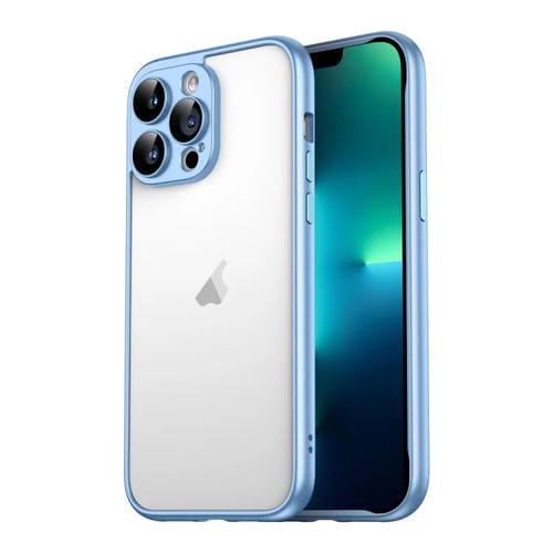 Funda para iPhone 13 Pro Max Macaron PC Marco de Borde con Película de Vidrio para Lente (Azul)