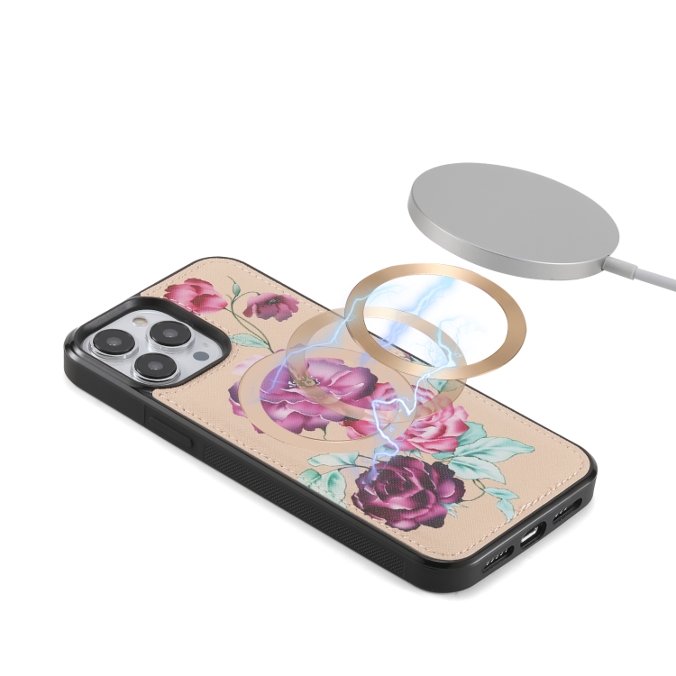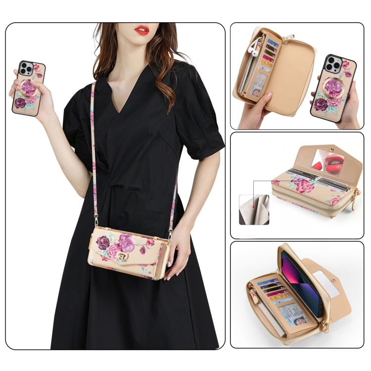 Funda de Cuero iPhone 13 Pro Max Magsafe con Billetera Cruzada Multifuncional con Cremallera (Amarillo)