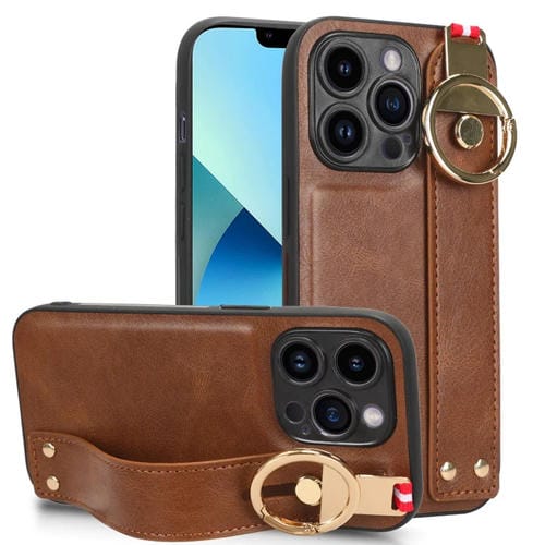 Funda Trasera de Cuero para iPhone 13 Pro Max Muñequera (Marrón)
