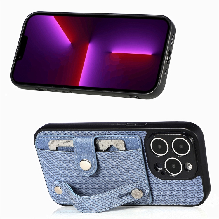 Funda para iPhone 13 Pro Max Muñequera Pata de Cabra Tarjeta Monedero Contraportada con Herramienta Cuchillo (Azul)
