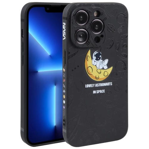 Funda de teléfono iPhone 13 Pro Max Patrón de Astronauta Borde Recto Silicona (Negro)