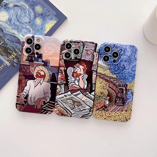 Funda para iPhone 13 Pro Max Precise Hole Oil Painting Glossy PC Phone Case (Tren)