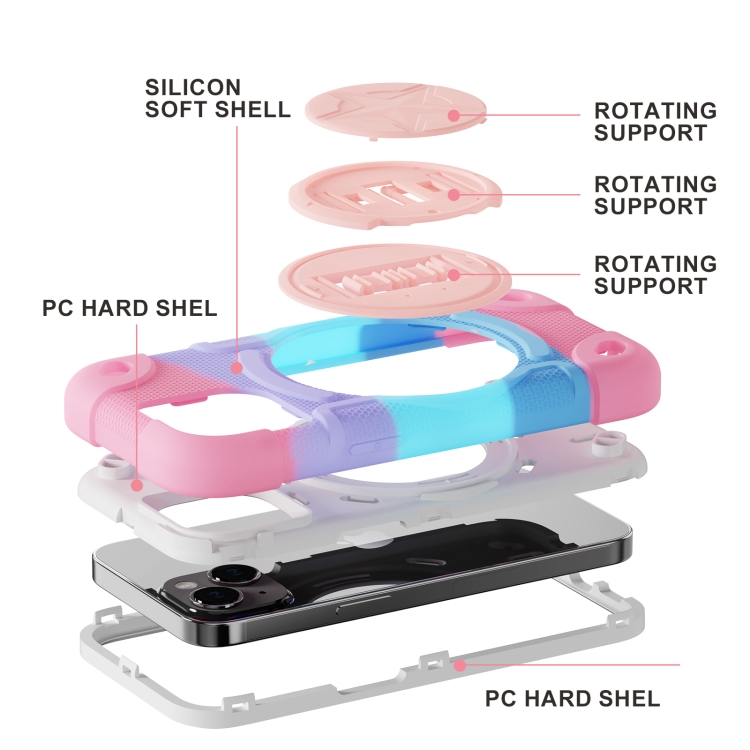 1. Material: hecho de cubiertas de policarbonato duro de 2 capas y una cubierta exterior de silicona suave, proporciona una protección integral.