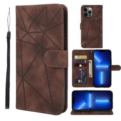 Funda para iPhone 13 Pro Max Skin Feel de Cuero con Líneas Geométricas (Marrón)