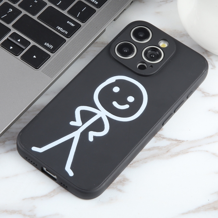 Funda para iPhone 13 Pro Max Stickman Pattern Silicona Líquida (Negro)