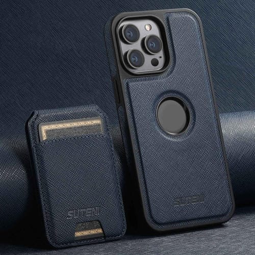 Estuche para Teléfono Suteni M2 iPhone 13 Pro Max 2 en 1 con Parte Posterior de Tarjeta Vertical Extraíble Magsafe (Azul)