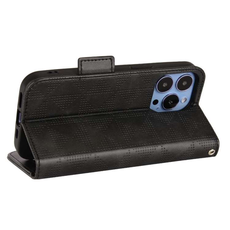 Funda para iPhone 13 Pro Max Symmetrical Triangle Leather Phone Case (Negro)