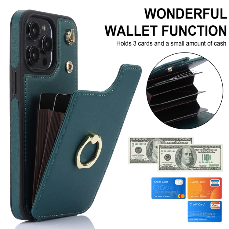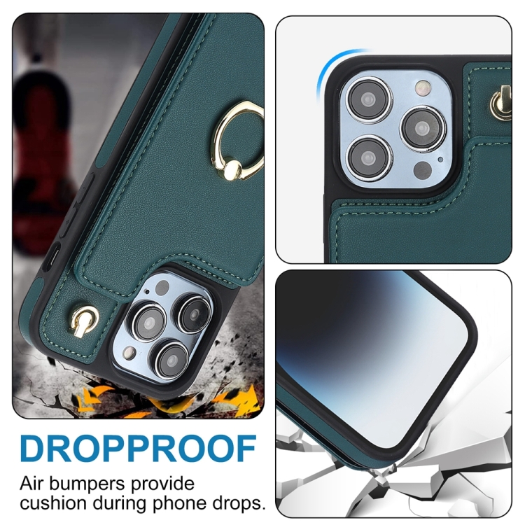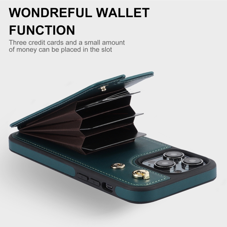 Funda para Teléfono Ym005 Skin Feel Card Bag para iPhone 13 Pro Max con Cordón Largo (Verde)
