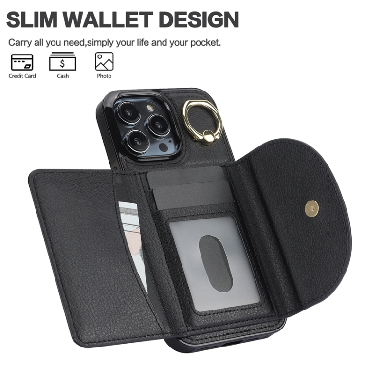 Estuche para Teléfono Ym006 para iPhone 13 Pro Max con Soporte para Anillo y Tarjeta (Negro)