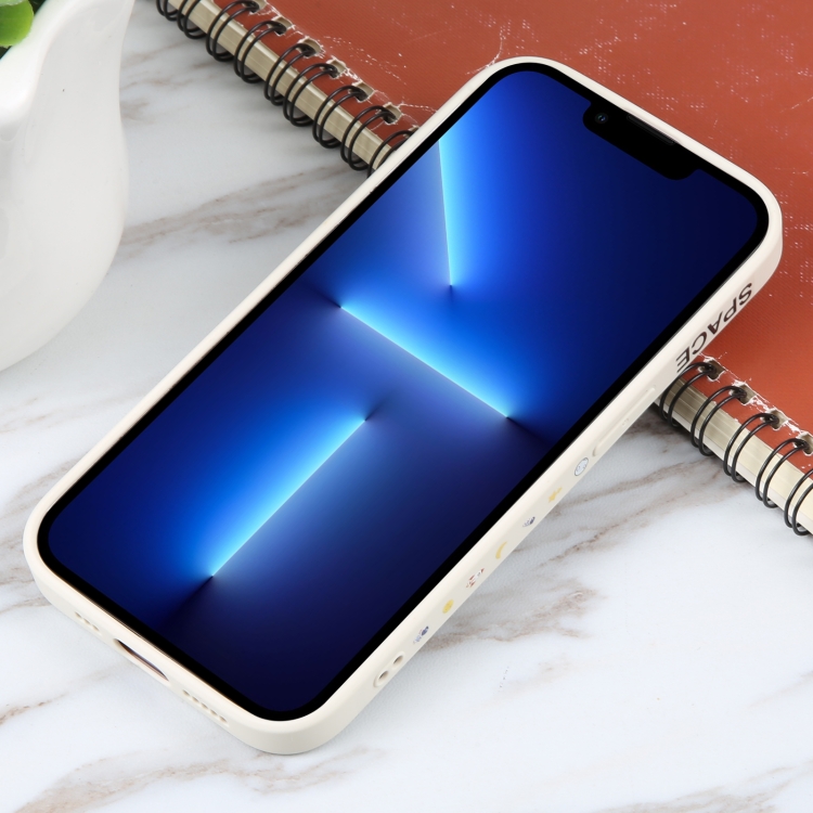 Funda de teléfono iPhone 13 Pro Patrón de Astronauta Borde Recto Silicona (Blanco)