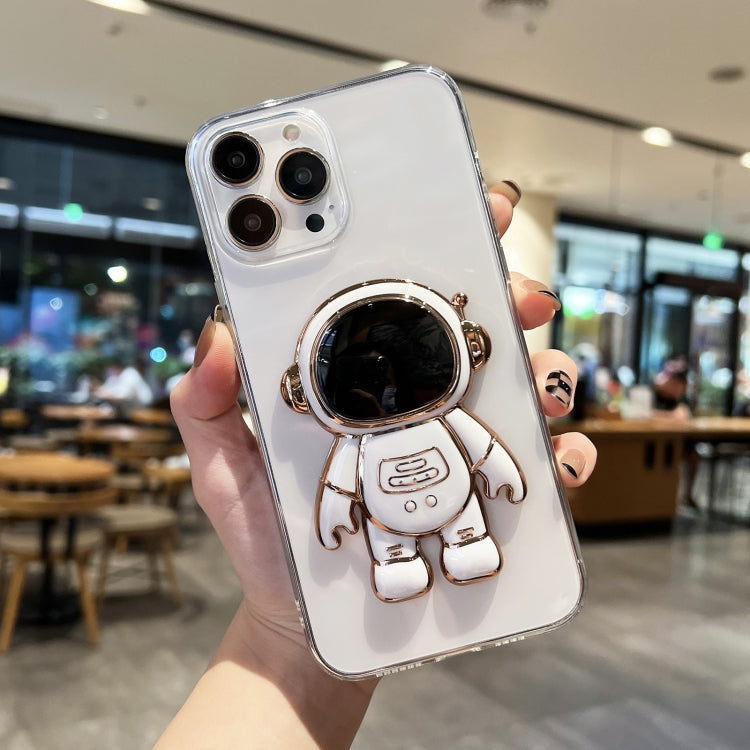 For iPhone 13 Pro Plating Astronaut Holder TPU Phone Case (Transparent White)