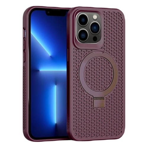 Funda para iPhone 13 Pro Skin Feel PC + TPU Magnética Magsafe con Enfriamiento y Soporte (Rojo Vino)