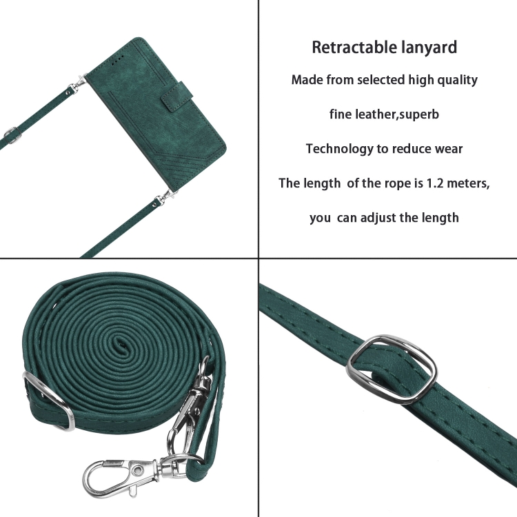 Funda para teléfono iPhone 13 Pro Skin Feel Stripe Pattern cuero con cordón (Verde)