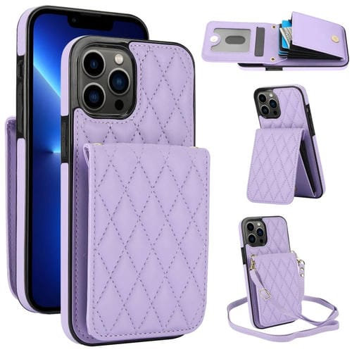 Funda para Teléfono Ym015 iPhone 13 Pro Rfid Bolsa para Tarjeta Rómbica Cruzada (Púrpura Claro)
