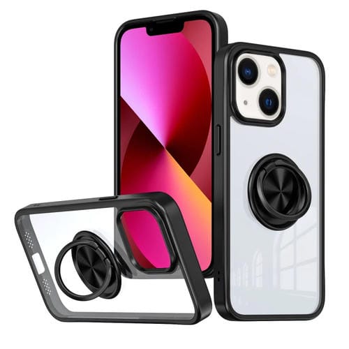 Funda para teléfono iPhone 13 Ring Holder PC Hybrid TPU (Negro)