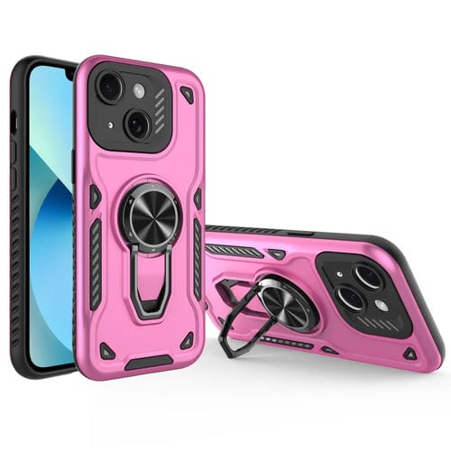 Soporte Giratorio de Metal TPU + PC Funda Magnética para iPhone 13 (Rosa Púrpura)