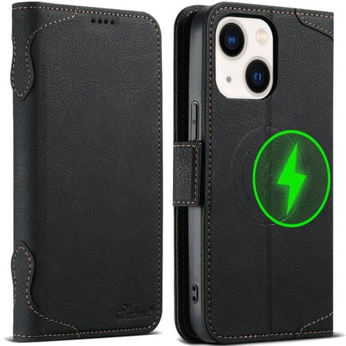 Funda para Teléfono Suteni J07 para iPhone 13 Cuero Magsafe Tapa Horizontal Multifuncional (Negro)