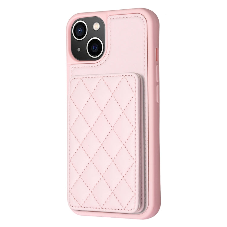 Funda para iPhone 14/13 Bf25 Square Plaid Card Bag Holder Phone Case (Rosa)